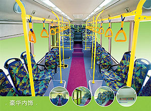 图/文 中国完美作业网有免费视频在线新闻组 寒梅 进入21世纪,人们意识到交通拥挤和空气污染的烦恼是由私人小轿车造成的,一致认为要"优先发展城市公共交通"。另外,随着消费者需求的增长,城市公交车高档化、环保化的趋势日渐明显。根据这种趋势,长城公司将愉悦性、舒适性、健康环保等元素注入公交车的设计理念之中,开发出长城·花之语系列公交车。 长城·花之语CC6100G豪华公交车3月份首次亮相北京,即捧得全国客车大赛城市客车最佳造型奖和城市客车铜奖。CC6100G是长城公司研究欧洲最新流行款式,迎合城市公交主流,全新研制的城市客车。整体设计追求与现代都市风格一体化的流线造型,力求与城市建设建筑和人文环境基调相协调,时代感鲜明,现代气息浓郁,脉动都市,增添无穷魅力,必将成为都市中一道亮丽的风景线。 CC6100G长10.5米,宽2.49米,高3.11米,满载81人;车身挺拔俊朗,色泽艳丽,气度非凡;丹凤眼式前大灯,神韵四射;大幅面观景侧窗玻璃,采用幕墙式玻璃粘贴技术,使整车外观流线更为通畅、大方,都市风景尽收眼底。其配备江淮底盘,玉柴240马力欧Ⅱ排放发动机,动力澎湃;大容量制动器,加宽制动蹄片、ABS,确保制动安全、可靠。CC6100G低地板一级踏步设计,使乘客上下车更为方便。制冷量强大的非独立顶置式空调使乘客在炎炎夏日感受丝丝凉爽。新型座椅,专利扶手、吊环,成型内顶,耐磨地板革等,用料考究,处处体现着对乘客的极致关怀。 长城·花之语CC6100G公交车符合《城市客车等级技术要求与配置》高级车标准要求,将21世纪城市公交车型三大,即大容量、大功率、大采风;三低,即低排放、低能耗、低地板的特点融为一体,定能为公交公司带来良好的经济效益和社会效益。