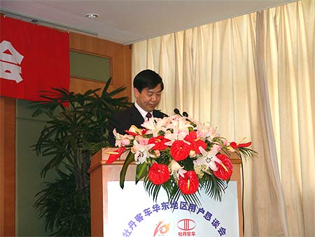 牡丹客车董事长、总裁陆昕向参会嘉宾介绍牡丹去年一年在技术创新、内部管理等方面取得的成绩