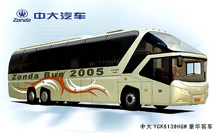 中大YCK6139HGW豪华高档特大型客车,成为本次展会的最耀眼的明星车型之一,吸引了众多与会人士的目光。该车型采用欧美最新流行造型,时尚、大气、整车浑然一体、饱满圆润,独特的前挡风设计,即有王者风范又不失典雅。该车采用了全承载车身,匹配420力大功率发动机,超豪华内饰,以及采用了欧洲先进的底盘技术,前独立悬架,后桥可随动浮桥,ASR,电涡流缓速器,集中润滑,盘式制动,保障车辆行驶的安全性和舒适性。大容量空调,豪华卫生间、多碟VCD、液晶显示器等服务设施,增强乘客的乘座舒适性,体现中大设计的人性化理念。即有王者风范又不失典雅。