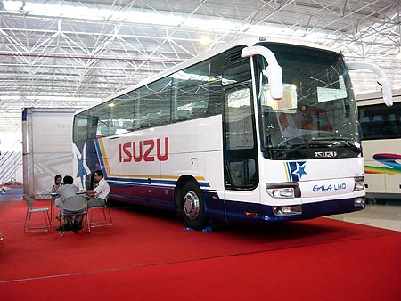 在首届南中国国际客车展上,广州五十铃的展出车型犹如璀烂的明星,紧紧地吸引住专业观众的“眼球”,顶级会议商务车、超豪华客车LHD已及2005年推出的E系列客车,他们是目前国内客车行业顶端技术的代表产品之一,彰显了广州五十铃在高档车领域中的强大的技术实力。