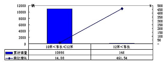 2005年1-8月不同车长大客整车累计销量及销量同比增长率