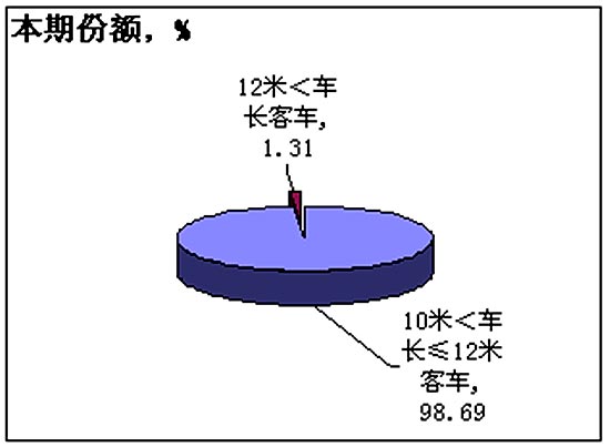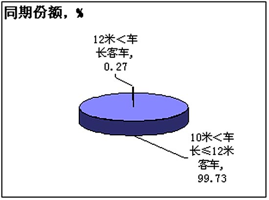 2005年1-8月不同车长大客整车累计市场份额对比