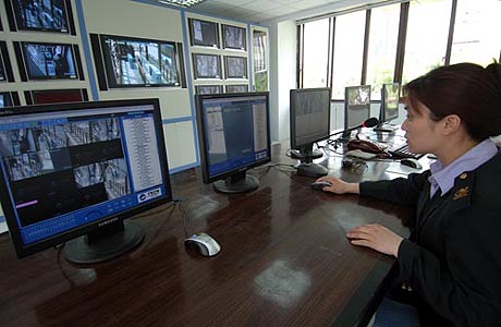 4月20日,工作人员正在监控室查看快速公交各站点的情况。