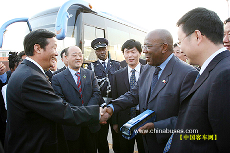 宇通总裁汤玉祥先生与塞拉利昂总统卡巴亲切握手