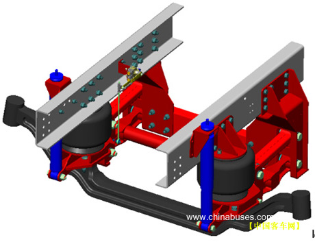 客车后悬架系统中,有DC080-驱动桥空气悬架、DF110--11T驱动桥空气悬架、DC130-2气囊13T空气悬架、DP130--4气囊平行四边形空气悬架、DF130W-13T