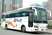 | "金星1号"GDW6121是桂林大宇2006年推出的12米系列新车型,2.55米的超宽车身使乘坐空间宽敞舒适,可选择进口韩国大宇和玉柴等多种型号发动机,价位从50-90万不等,有大型中级、高一级和高二级 |