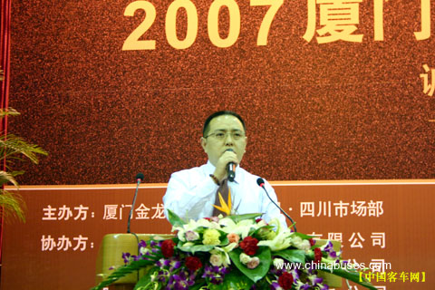 独步世界之颠"的2007新品推介会,厦门金旅副总经理万邵春、销售公司副总经理刘俊鹏、川渝大区市场经理杨洋以及来自四川省的众多金旅客车经销商及客户代表共同出席了此次会议。