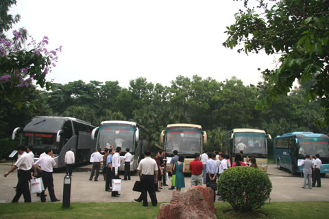 6月11日,"海格客车2007安全之旅"广州站活动在长隆酒店隆重举行,苏州金龙总经理吴文文、副总经理黄书平、斯堪尼亚中国区服务总工URBAN以及来自广东省客运、旅游、公交、团体领域的120多名客户代表以及行业媒体代表参加了活动。