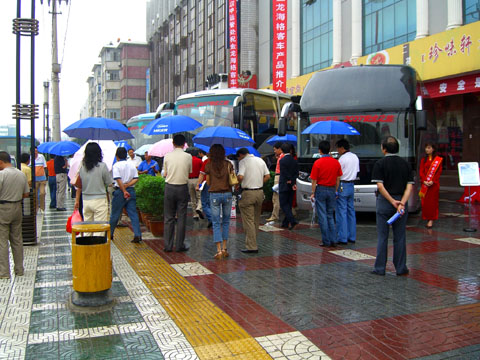 客户冒雨参观海格2007安全之旅展车