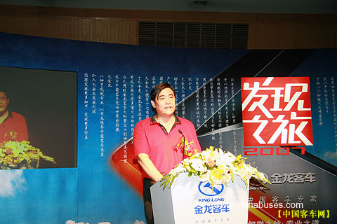 8月18日,"发现之旅"--大金龙"品牌传播暨新产品上市活动"在北京拉开了序幕,开幕仪式上北京巴士旅游客运公司作为客户代表发言,发言中客户代表讲述了大金龙客车伴随其成长的经历以及对旅游客运运输市场的发展的感触。