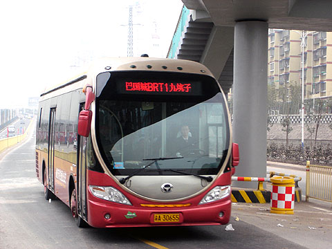 据了解,2007年12月29日竣工通车的重庆市第一条快速公交(BRT)示范线路——高九路示范线,是重庆市具有里程碑意义的首条快速公交线路,也是全国首次在山地城市运营的快速公交系统。高九路示范线是重庆“快捷城市”建设的新进展,是提升城市形象的一个重要的“民心工程”。示范线以九龙园彩云湖为起点,经由位于城市核心区高九路到达九坑子,全长12.34公里。沿线设11处站点(16个站台),站间距1.1公里;专用站台高35厘米,于车辆第一级踏步齐平;站内的LED电子显示屏可以为显示车辆线路号和到达时间,并有线路图、换成提示、站内指示图、语音播报等相关信息配套系统,为乘客提供完善的乘坐信息提示;另外站内还设有票亭、座椅、盲道等一系列便民设计,尽力为乘客营造舒适放松的候车环境。