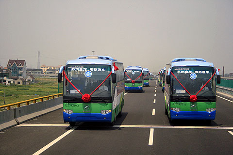 在斯堪尼亚·海格高档豪华商务车的引领下,20多台苏州金龙海格客车组成的车队浩浩荡荡跨过卧波巨龙,从嘉兴驶向大桥对岸的宁波,演绎了一出“龙”跨“龙”的好戏,此举标志着世界第一跨海大桥正式进入试运营阶段。