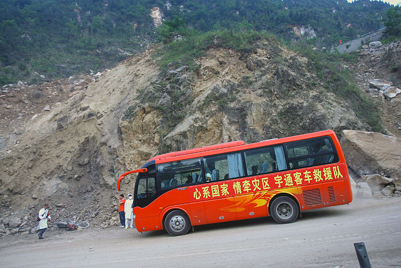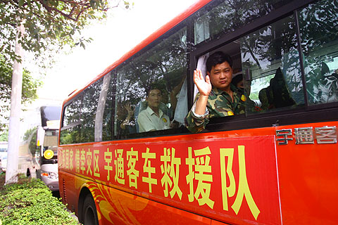 此时,救援队中的司机师傅等人已经近10个小时没有吃一口饭,更没有片刻的休息。大灾面前任务就是命令,更是责任和使命,我们立即又驾车前往德阳。看到服务的医疗队员连上车的力气就没有了,同样疲惫不堪的宇通救援队员又一个个将队员们扶上车,把他们安全接送到成都。完成任务后,已经是18日凌晨零点35分了,大家简单吃了一点东西倒头便睡,谁知刚躺下不到半小时,成都市部分城区再次发生余震,我们又不得不疏散到楼下。