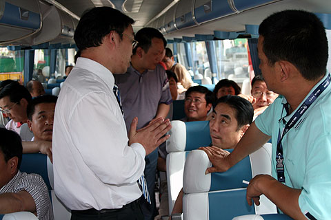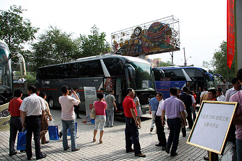 记者从展示车辆的阵容也看出了大金龙对新疆市场的重视,从9米到14米,一共五款车型,驰骋数千公里抵达新疆,干净整洁的呈现在客户面前,让众多客户赞叹不已。大金龙技术研发部副经理谭鸿迅向现场的客户代表详细介绍了5款巡展车型的最新技术成果及车型优势,分别是龙威XMQ6129Y、龙威加长版XMQ6140Y、2006年度车型XMQ6126Y、2007年度畅销中巴捷冠XMQ6900和2008年全新打造的10米车型XMQ6117Y五款精品车型。他说,这些车型对新疆市场有着较强的针对性和适应性,将成为未来新疆市场上大金龙的主打产品。