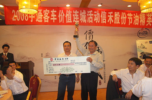 在颁奖典礼上,信禾股份安技部张满棠经理表示,"此次节油精英赛和《宇通价值宝典》节油驾驶培训的效果很好。节油精英赛的成功举行让我们看到了通过规范驾驶员的操作行为我们的油耗还有较大的降低空间,而《宇通价值宝典》节油驾驶培训对我们来说是非常实惠的一次培训。宇通公司千里送经使我们受益匪浅,让我们深切地体会了此次"价值连城"活动的主题--为您创造更大价值,希望宇通公司能够常来,为我们带来更多收益。"