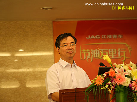 同时我们还邀请到了这么多的新闻媒体朋友,将专家节油经验,和节油管理经验,以及节油制造技术向公众介绍传播,呼吁社会各界,以及个人人都树立节能意识,江淮客车有将吸取各位提出的建议,进一步打造技术更先进的客车,我再次代表江淮客车全体员工衷心祝愿这次活动能够取得圆满成功,祝各位领导各位专家,媒体朋友们,和各位新闻朋友们身体健康,万事如意,旅途愉快,谢谢大家!
