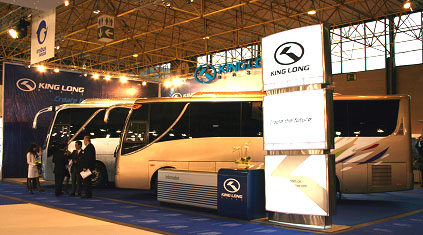中国客车首次亮相比利时车展 2005年10月21日,第18届世界客车博览欧洲展览会在比利时小镇Kortrijk如期举行。在这次展览会上,来自中国的观众惊喜的发现了中国人自己的展台和展车--大金龙携两台旅游客车昂首挺进了第18届世界客车博览欧洲展览会!