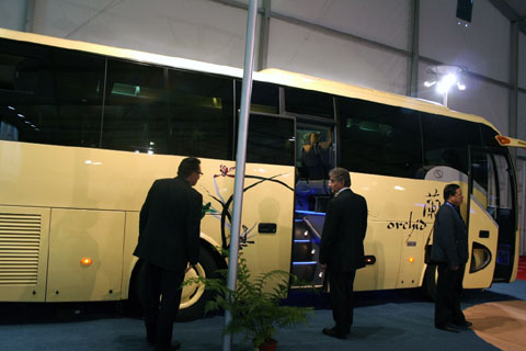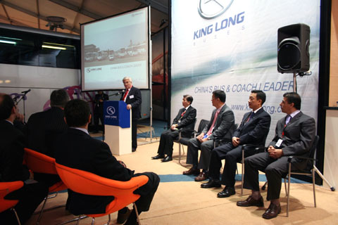 BAAV秘书长LUC先生致词 公司业绩持续19年保持稳定增长,2006年销售大中型客车23216辆,销售收入9.5亿美元。2007年销售量预计30000台以上,销售收入12.5亿美元,比2006年增长30%左右。截止2007年9月,公司累计生产客车超过13万台,在中国占市场保有量的20%,高居行业榜首。