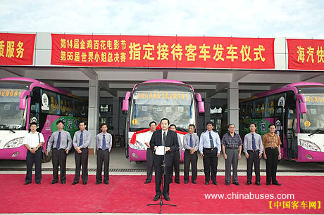 10月31日,作为全国第14届金鸡百花电影节暨中国电影100周年庆典及第55届世界小姐总决赛指定用车的16台宇通大巴驶出宇通工业园。 中国金鸡百花电影节于1992年首次举办,目前是中国规模最大、最具权威性的电影评奖颁奖活动,同时也是国内历史最悠久、最具影响力的电影界盛会。本届电影节恰逢中国电影诞生100周年,倍受社会各界关注。 作为会议指定用车的16台车,包括11台ZK6120HP和5台ZK6100H。其中,ZK6120HP是公司在与德国MAM合作基础上,自主研发的12米豪华旅游客车,整车充分借鉴目前欧洲豪华旅游客车流行的内饰设计风格,追求整体协调的同时,处处彰显人性化设计。该车型曾服务于第13届亚洲杯足球赛,用于比赛期间接送运动员、裁判及媒体记者,一举扭转了以往在国际大型体育赛事中由国外品牌客车包揽的局面,为中国的客车业在世界的崛起迈出了坚实的一步。