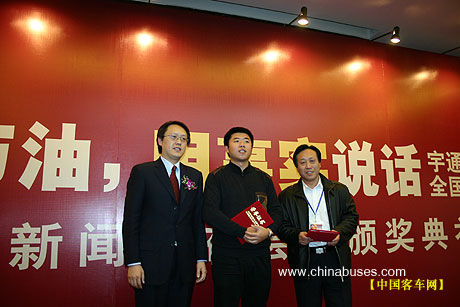 宇通公司总经理助理王文兵 潍柴动力副总经理冯刚为一等奖获得者颁奖