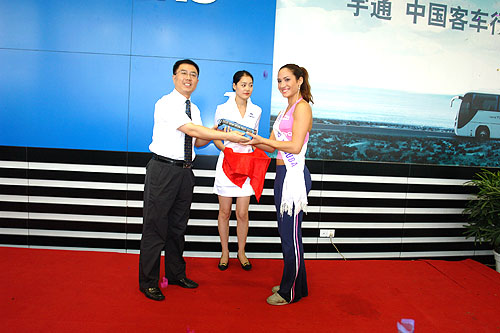 巡游期间,87名佳丽们与她们同乘的豪华宇通客车一起,成为此次活动的一大亮点。当她们牵手宇通走进宇通工业园时,更是受到了热烈的欢迎。刚一下车,热情的宇通人就为佳丽们戴上了美丽的花环,接下来进行了厂区参观、拼图游戏等互动节目,现场气氛达到了高潮。最后,宇通代表还向佳丽们赠送了精美的宇通车模。佳丽们纷纷表示,宇通车不仅豪华大气,而且舒适美观,来到宇通工业园后,更是被宇通雄厚实力所吸引、被宇通人的热情所感染。