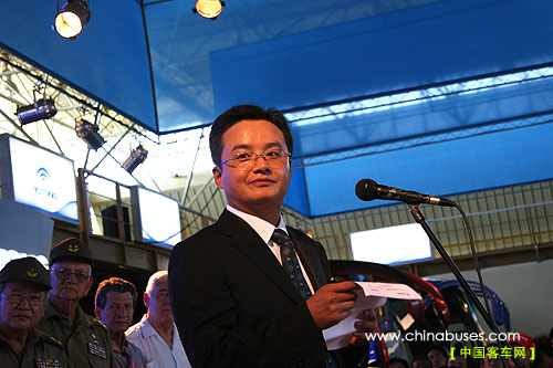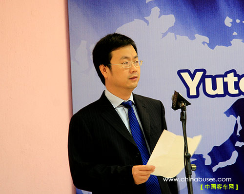 宇通集团海外市场总监秦扬文在产品推介会上致辞