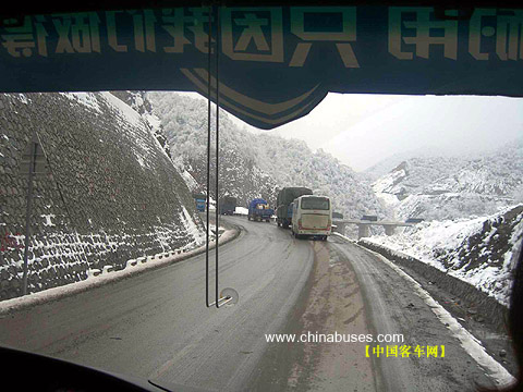 从武汉出发的时候,一股冷空气已经蔓延了大半个中国,连绵不绝的雨水给行进带来了很大的困难,而真正的考验还在后面。从陕西到四川,秦岭是我们必须跨越的障碍。车在盘山公路上稳健的前行,此时,两旁是险峻的地形,而道路又十分的湿滑。可我们无需担心,因为肖哥和金城师傅都是有经验的老师傅,更重要的是我们乘坐的就是我们自己的宇通车,放心。