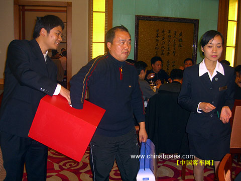 午饭过后,活动进入到了抽奖环节,也把整个活动的气氛推向了高潮。所有人的目光都会聚到了抽奖台。大家都热切的期待着,谁会成为今天的幸运之星呢?最先开出的是三等将,接着是二等奖,终于到了最扣人心弦的时刻,一等奖会花落谁家呢?一等奖由邀请而来的湖北公路客运集团董事长庄宝麟先生开出。随着庄董事长一声落定,一等奖终于揭晓,来自海龙客运的刘先生成为了最大的幸运者,大家以热烈的掌声和欢呼声表达着对他的祝福。