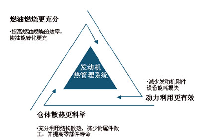 发动机热管理系统是宇通博士后工作站通过对发动机及其附件设备能耗的大量实验和数据分析,应用自身多项先进技术成果,独家研发的提升发动机燃油使用率、工作环境,有效降低发动机附件能耗的能量并延长使用寿命的管理和优化系统。