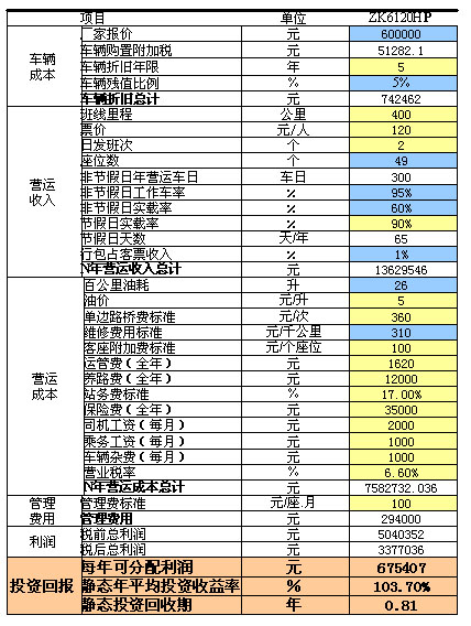 另以运营里程400公里,一天2个单趟全程高速的车辆终身收益模型为例:
