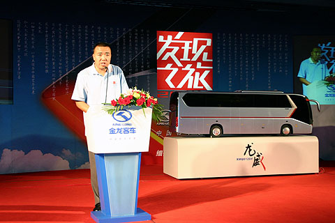 林闽雄先生致词,他站在企业的角度,全面介绍了金龙公司近年来在产品研发、管理等方面的成绩以及此次产品推介中的三个主角。他在发言中提到:"过去的两三年里是大金龙业绩快速上升,内部管理持续完善的一个重要阶段。大金龙在社会各界的支持下,取得了一系列的成果。2007年上半年,公司销售量和销售额同比上涨30%,连续三年保持30%的增长。三年内,品牌价值增长21亿元,达到70亿元,排名全国第88位。2007年年初,大金龙提出了"整合外部战略资源,集成创新技术,推动服务转型,成为中国客车制造和服务专家"的中期战略思想。在这一战略思想的指导下,大金龙已经着手从产品、服务和海外经营能力等方面全面加力,其成果是很显著的,获得客户和媒体的褒奖。"