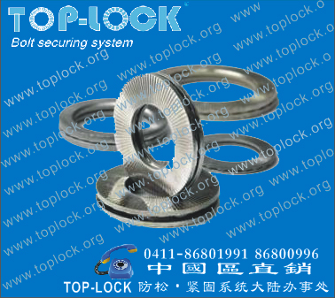 TOP-LOCK 防松垫圈的楔入式独特结构改变了传统依靠摩擦力的防松方式,而采用国际先进的防松技术,利用张力来防止连接件在强振动时引起的松动。