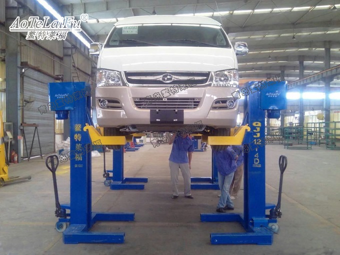 ◆升降托架采用内置导向,每个立柱采用单独的液压移动小车,一个人可以轻松将举升机移动至所需要的位置,操作灵活、轻便;