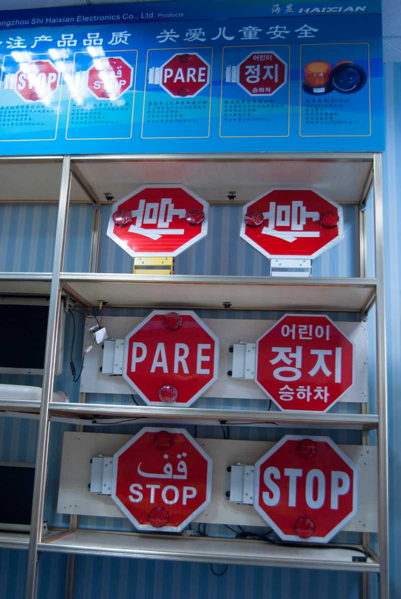 5、本公司生产的《校车停车指示牌》在牌体打开时,4个LED警示灯(二面各2个)会交替闪烁,同时发出高分贝警告音,来提醒过往车辆或行人注意安全,并避免学生上下校车时,与过往车辆或行人发生碰撞事故。