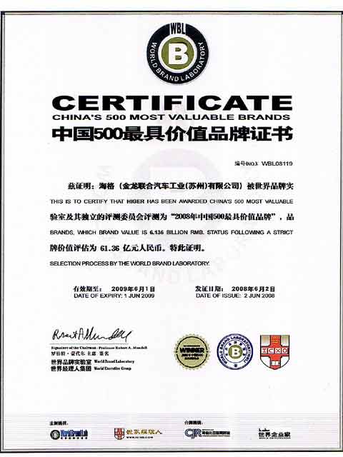 后来在市场竞争加剧,企业寻求出路的背景下,苏州金龙自创了品牌“海格”,选择发展大客车事业。年轻而富有活力的海格客车以一种蓬勃的生命张力,很快跻身中国客车第一阵营,目标打造世界客车品牌。9年来,海格客车市场保有量突破9万台;足迹遍布俄罗斯、埃及、阿尔及利亚、巴拿马、卡塔尔、马来西亚、香港等56个国家和地区;“HIGER”标识和图形商标,也已在48个国家注册。2007年,“海格客车”荣获“中国名牌”称号,成为社会公众信赖的中国客车品牌。2008年,海格客车更是以61.36亿元的品牌价值,首次荣登本年度最具价值品牌榜,与宇通、金龙一起名列行业三甲。