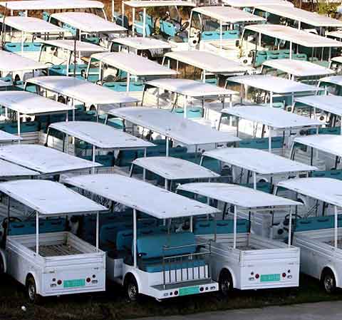 曾服务于“鸟巢”、“水立方”等35个奥运场馆以及奥运村、首都国际机场、奥林匹克公共区等7个非竞赛场馆的415台汉产纯电动场地车,在残奥会闭幕后陆续返回武汉。而现在,由于纯电动车在武汉不能上牌上路,近200台奥运电动车只能停放在蔡甸一工厂内的空地上日晒雨淋。