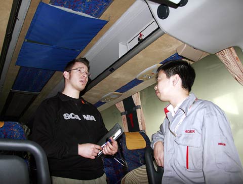 据陪同记者参观的苏州金龙工作人员介绍,这套工艺流程是完全按照斯堪尼亚的标准制定的,工作人员责任、分工十分明确,效果也比苏州金龙的常规制作流程好。受斯堪尼亚这一工艺制作流程的启发,苏州金龙对其他客车的工艺流程进行了相应的调整。