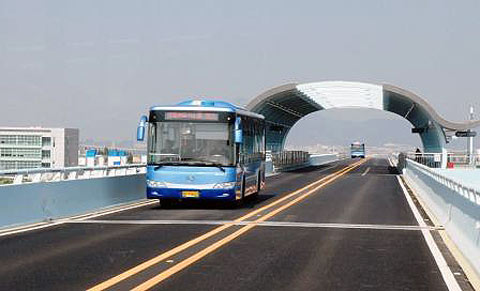 在厦门,从会展中心通往机场的城市快速公交道路上,208辆设计新颖的金龙客车成为一道亮丽的风景线。