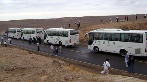 2008年8月28日,在简单的出发仪式结束后,哈密光明旅游汽车公司的6台金旅XML6896客车载着近200位中外客商,开始了穿越死亡之路——罗布泊的探险之旅。