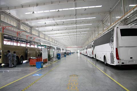 整洁有序的斯堪尼亚海格豪华车生产车间