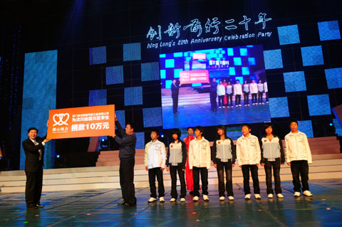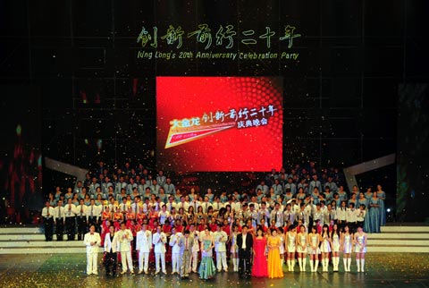 18日晚,在厦门嘉庚体育馆,一场精心准备的庆祝晚会将大金龙20周岁的华诞推向了高潮。会上,大金龙董事长孙建华、总经理江世煌为海内外典型客户、经销商、服务商、配套商及员工代表100人颁发了金牌,以表达20年来共同合作走过历程的感谢。除此之外,由大金龙在2008发现之旅新疆站发起的“爱心接力”活动再次举行,大金龙总经理代表大金龙再次向四川地震灾区10位孤儿捐赠爱心款10万元,爱心与祝福感动了在场的所有观众。