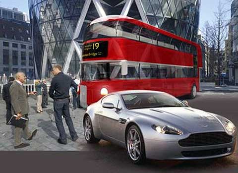 ASTON MARTIN与英国著名建筑公司所合作提案的双层巴士,特色在于全玻璃式车顶结合太阳能板,除了应用的是伸手可及的现有技术之外,木质地板在乘车入口的伸降无障碍设计更是相当具有未来空间思维。伦敦交通部力争在2009年底与阿斯顿马丁合作更换全新的双层巴士。