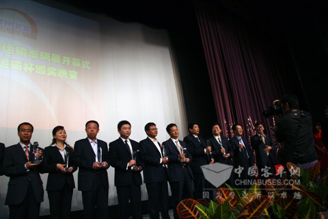 中国道路运输杯最佳公路客车奖:江苏中大汽车集团公司,江苏常隆客车有限公司,厦门金龙旅行车有限公司,安徽安凯汽车股份有限公司,中通客车控股股份有限公司,重庆恒通客车有限公司,烟台舒驰客车有限责任公司,郑州宇通客车股份有限公司,金龙联合汽车工业苏州有限公司,安徽江淮客车有限公司,丹东黄海汽车有限责任公司,北汽福田汽车股份有限公司,厦门金龙联合汽车工业有限公司,桂林大宇客车有限公司,上海申龙客车有限公司。