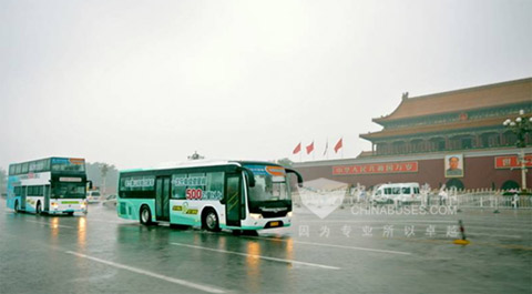 继中大青山纯电动客车500公里示范运行于2009年7月16日圆满收官后,2009年7月17日,中大汽车集团YCK6118HEC、JLY6110SB双层纯电动公交车驶上了长安街,进行示范运行。