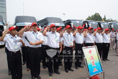 还记得在2009年7月17日中通客车赞助全运会首批车辆交车仪式上,有个现象非常有意思,在中通客车总经理时洪功的发言里和服务车辆领队带头宣誓时,都出现了险些将服务“全运”讲成了服务“奥运”的失误,说者自然无心,听者也未必有意,但这件事却透示了一个信息,“奥运精神”已经深深的印在了中通人的骨子里。