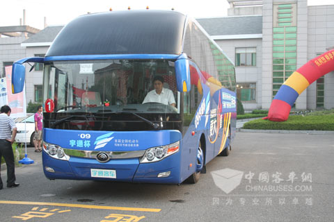 “宇通杯”驾驶员节能技能竞赛指定用车ZK6127在起点准备出发