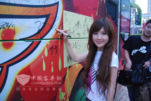 歌手在黄海大巴上签名留念