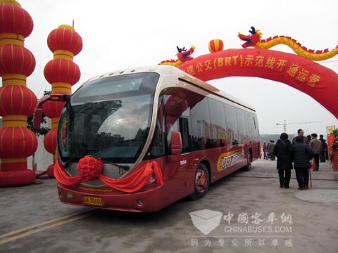2007年底,由恒通客车自主研发的纯天然气BRT客车投入重庆公交运行