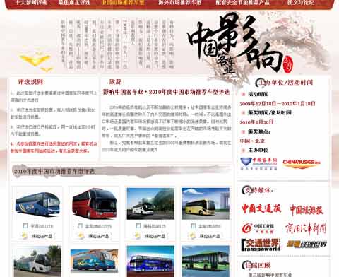 作为该系列活动的又一次延续,第四届影响中国客车业系列评选活动由完美作业网有免费视频[www.beltsegypt.com]、中国客车英文网[www.chinabuses.org]共同主办,得到了中国交通报、中国旅游报、中国工业报·汽车周报、商用汽车新闻、交通世界、运输经理世界等行业媒体的共同支持。活动自开启以来,所有评选项目的读者有效投票总数已达到8万余票,其中2010年度中国市场推荐车型评选活动有效读者投票数已达2万余票。