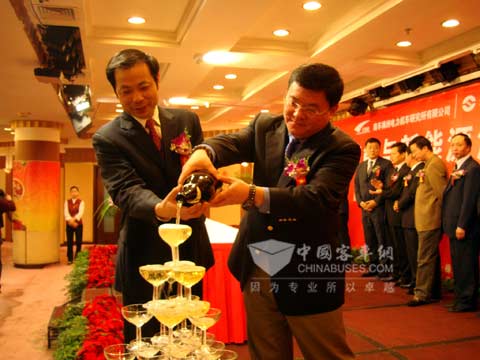 曙光汽车集团总裁李海阳开启香槟庆祝